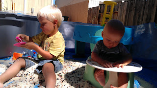 | Pumpkin patch time. Sam followed "this guy" around basically during our visit. When the boy left Sam exclaimed "where's the guy, where's the guy!" |